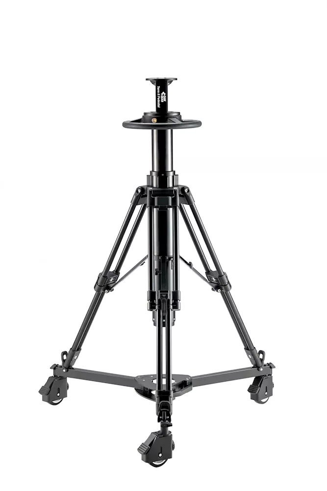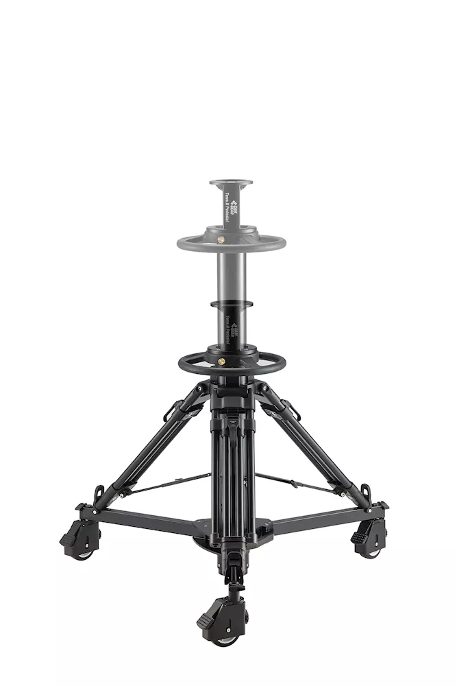 delivers pro-level performance at an affordable price, supporting up to 40 kg/88 lbs with smooth, precise vertical movement. Despite its strength, it remains lightweight and portable at 20 kg/42 lbs and comes in a road-ready hard case. Its accurate pressure gauge ensures fast, easy setup, while the dolly’s adjustable wheels and cable guards adapt to studio or OB use. With a secure build/transport lock, the Terra II is a versatile solution for productions ranging from podcasts to full broadcast.