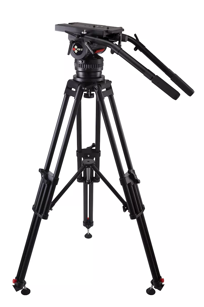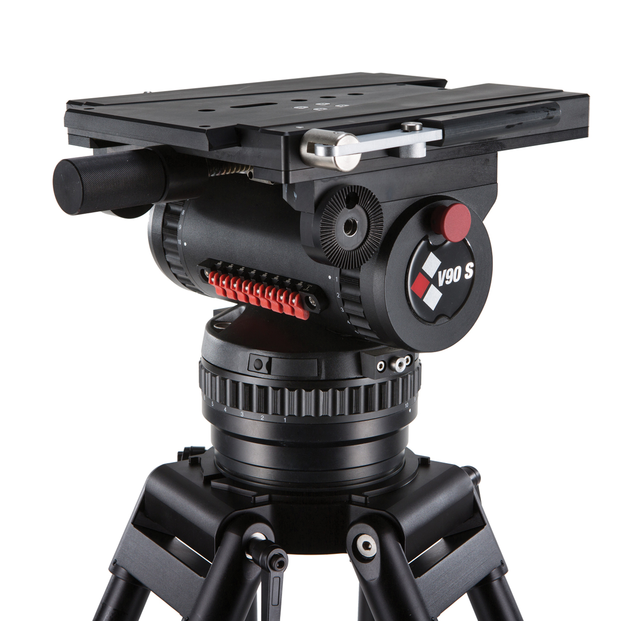 Tripod System incl. V90 Studio/OB Fluid Head, OB Heavy-Duty Aluminum Tripod, 2x Telescopic Pan Bar PB-3 (Left & Right), Mid Level Spreader & Tripod Bag (Mitchell Adapter and Locking Knob are not included)