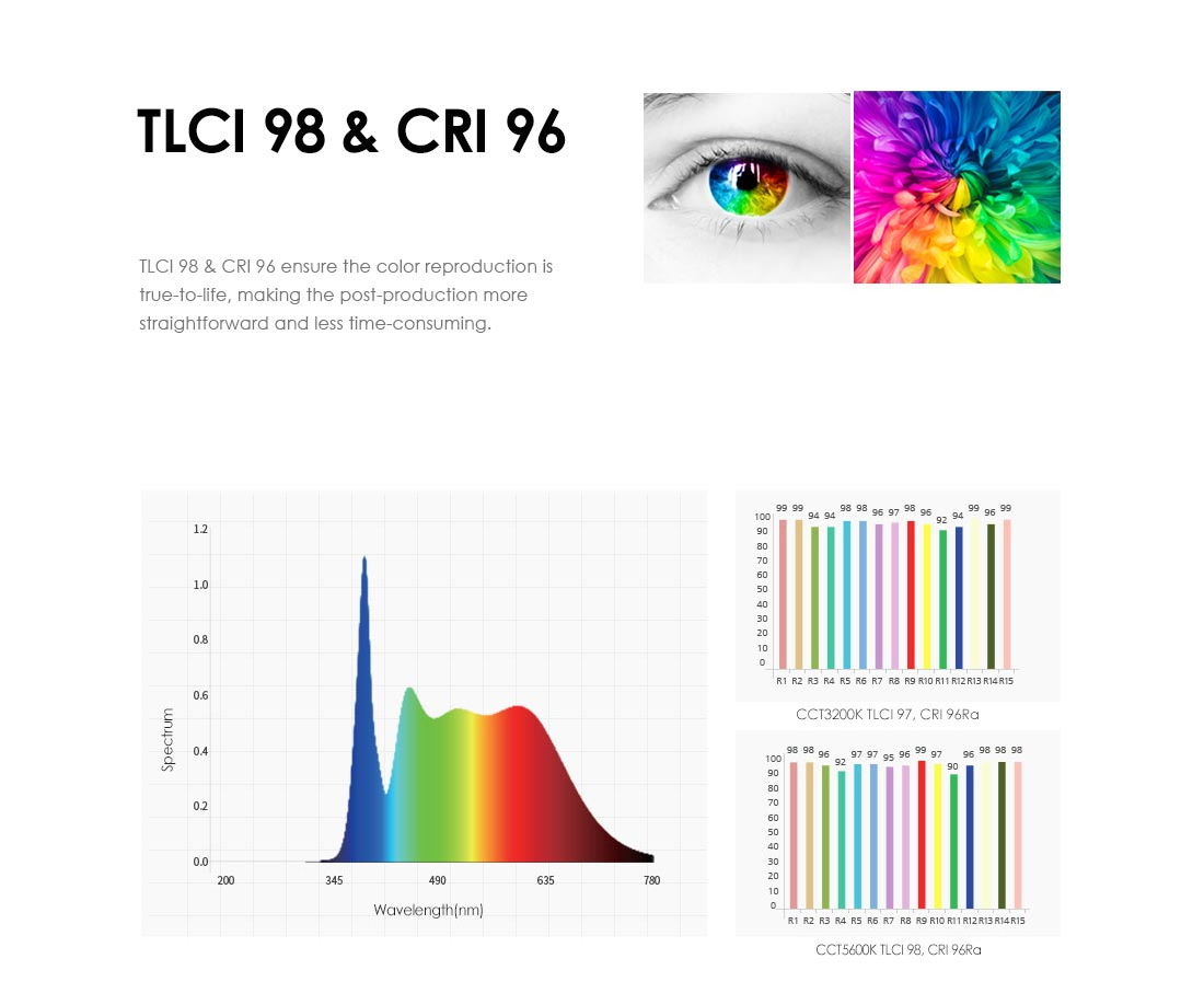 - Farbreinheit: CRI 96 ~ 98 / TLCI 98