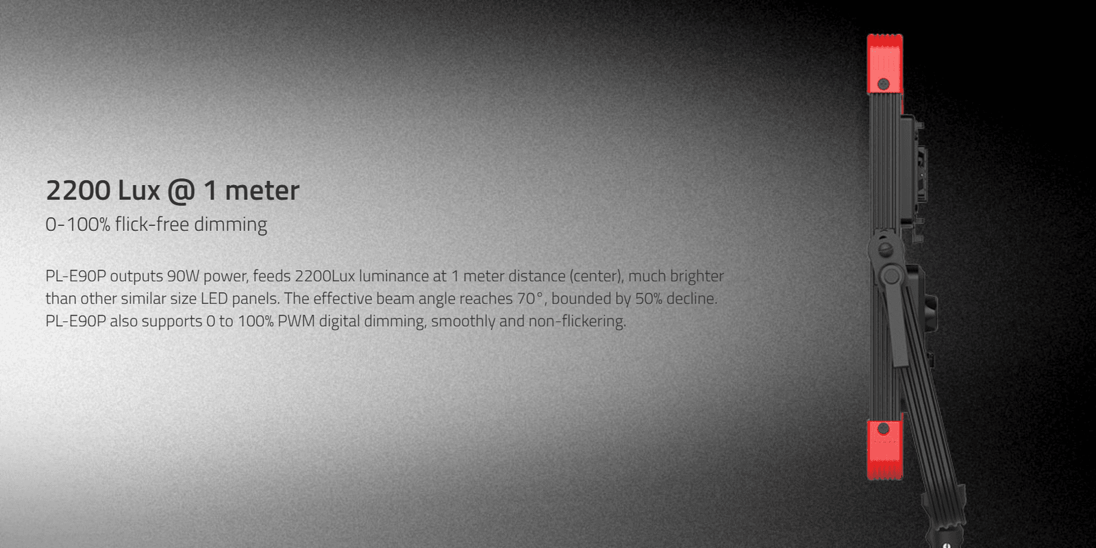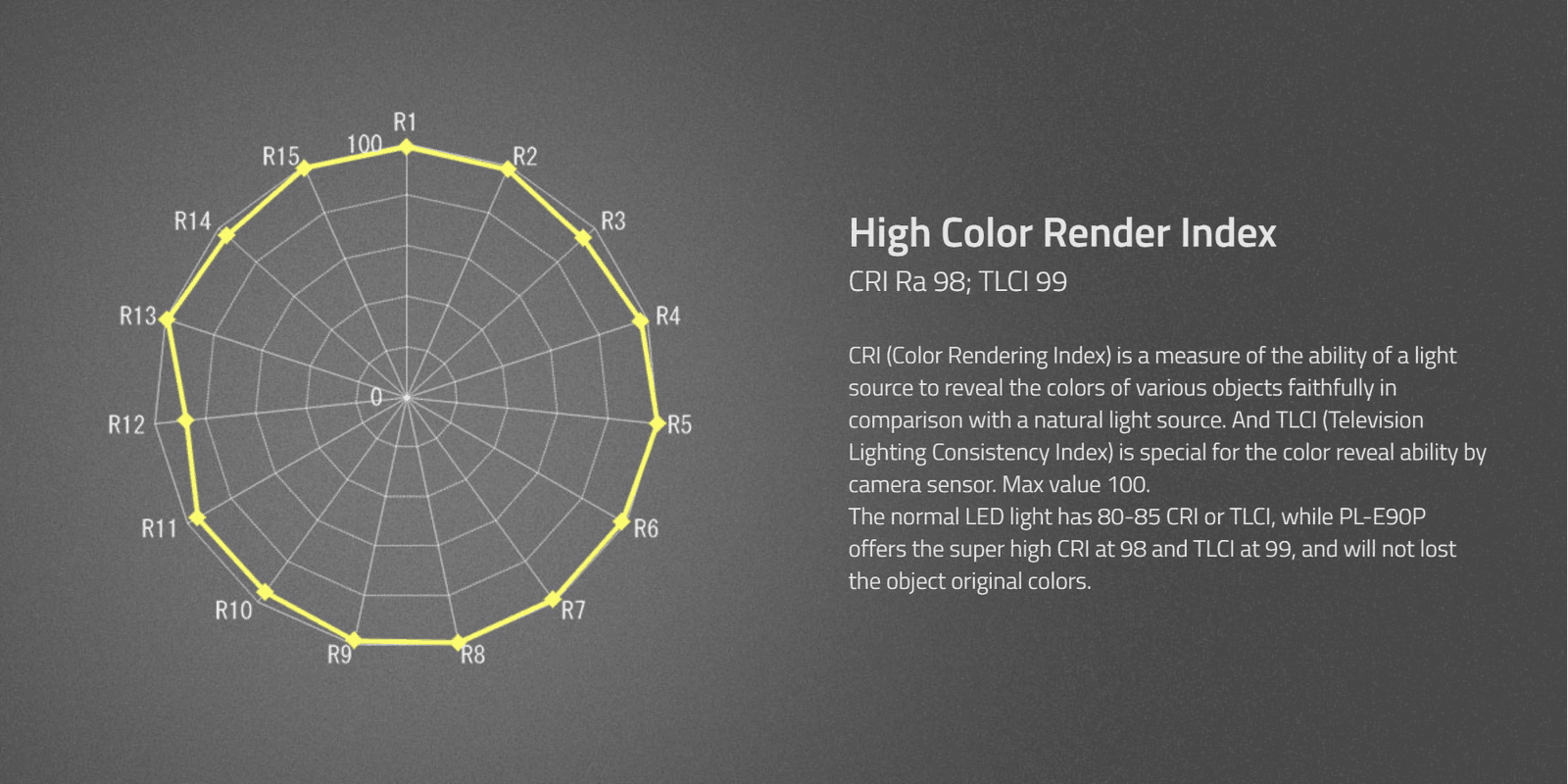 TLCI 99, DMX support, 90W, 2200Lux@1m, stable brightness even battery power is few,