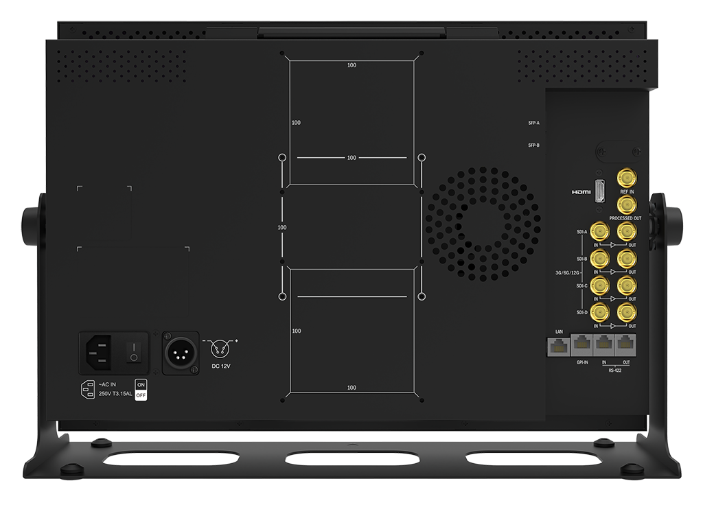 The LXM series incorporates 12G-SDI Input(x4), 12G-SDI Output(x4), Reference(External Sync) input, HDMI 2.0 Input, SFP Input(x2) & Processed Monitor Output.