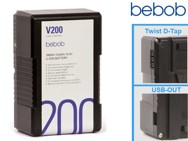 BEBOB V 200 V-Mount Akku mit D-TAP und USB Ausgang