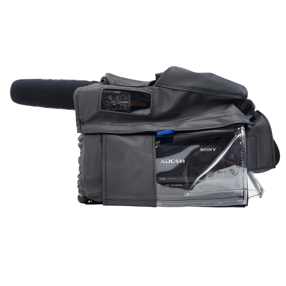 The rain cover is designed specifically for the Sony PXWZ90 and HXR-NX80 camcorders. The near silent fabric minimalizes unwanted sound effects caused by wind and rain and reduces the chance of the camera overheating by allowing hot air to escape via openings and vents.