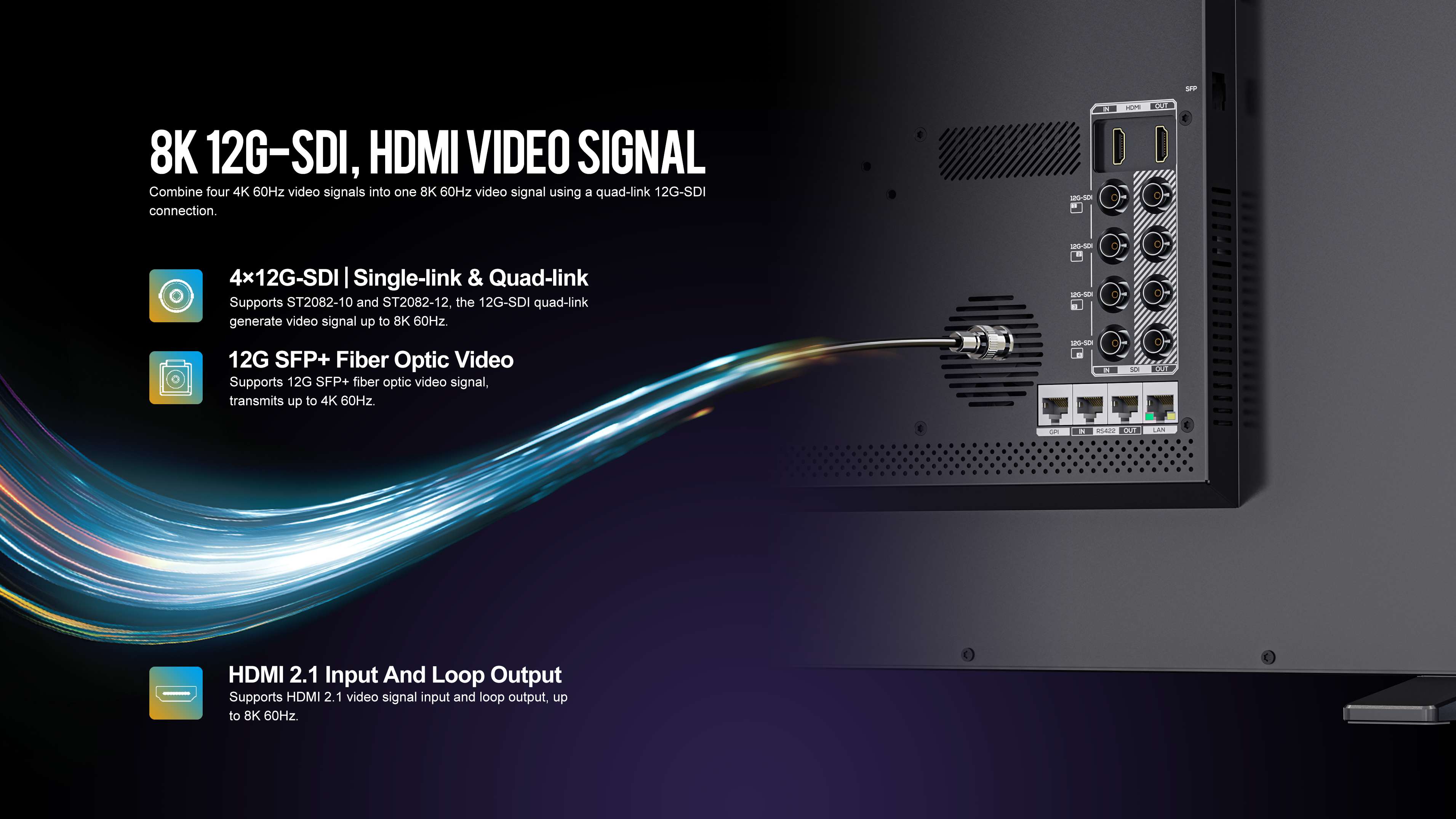 - 4 x 12G-SDI (bis 8K/60P)
