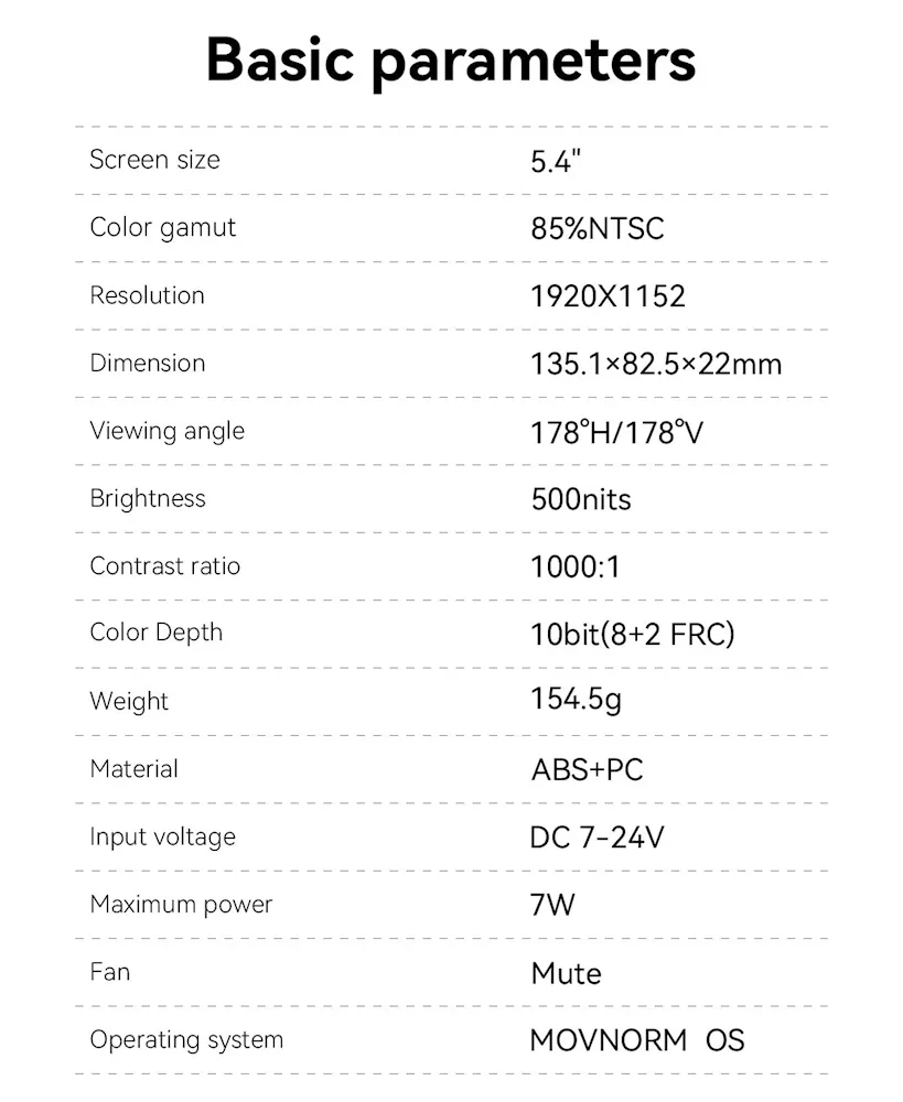 - Unterstützt durch MOVNORM OS, mit einem vollständigen Satz professioneller Überwachungstools: Wellenform-, Histogramm-, Peaking-, Falschfarben- und 3D-LUT-Überwachung.