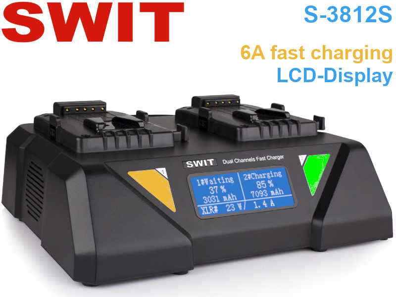 - (Ein 160Wh Akku (z.B. SWIT S8340S oder S8113S) wird in nur ca. 2:35 Stunden voll aufgeladen - normale Ladegerät benötigen etwa 6:20 Stunden)