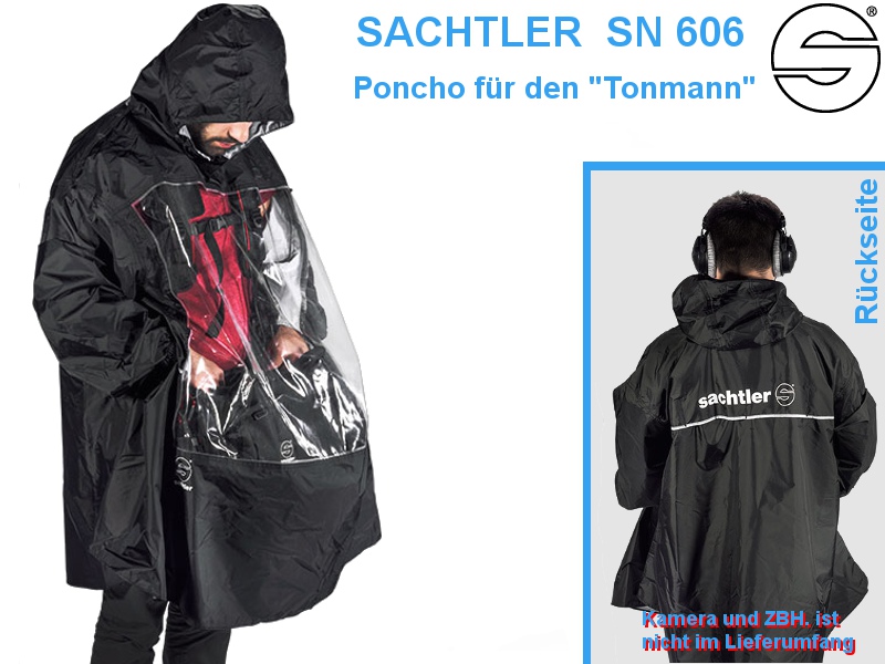 - Der Poncho bietet dem Tontechniker mit umgehängtem Mixer und einer vollen Eargonizer Tasche bequem Platz.