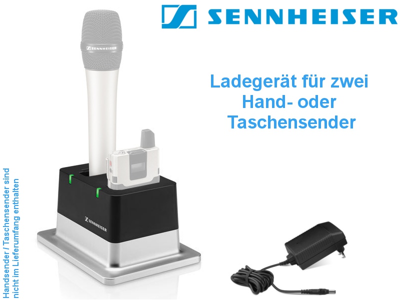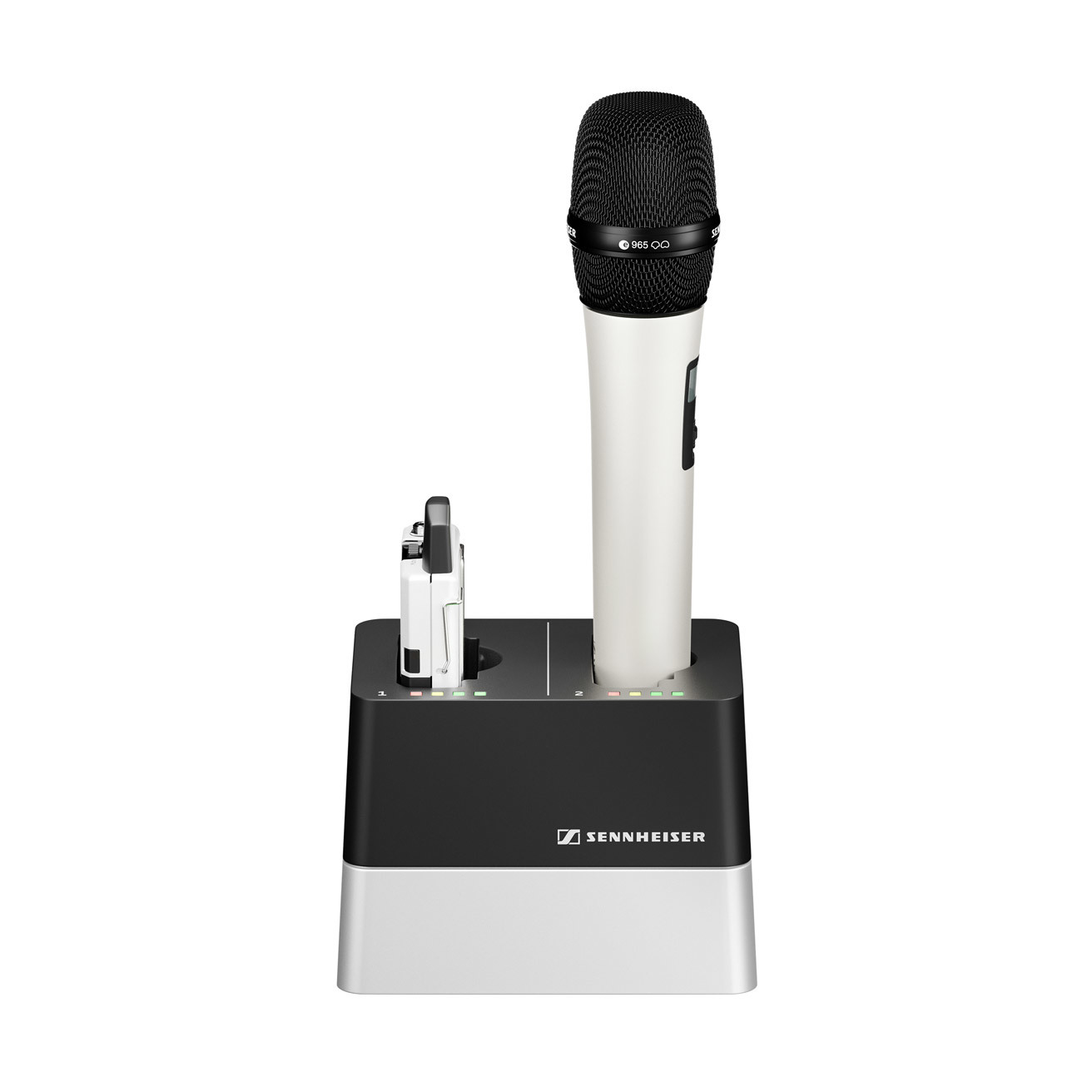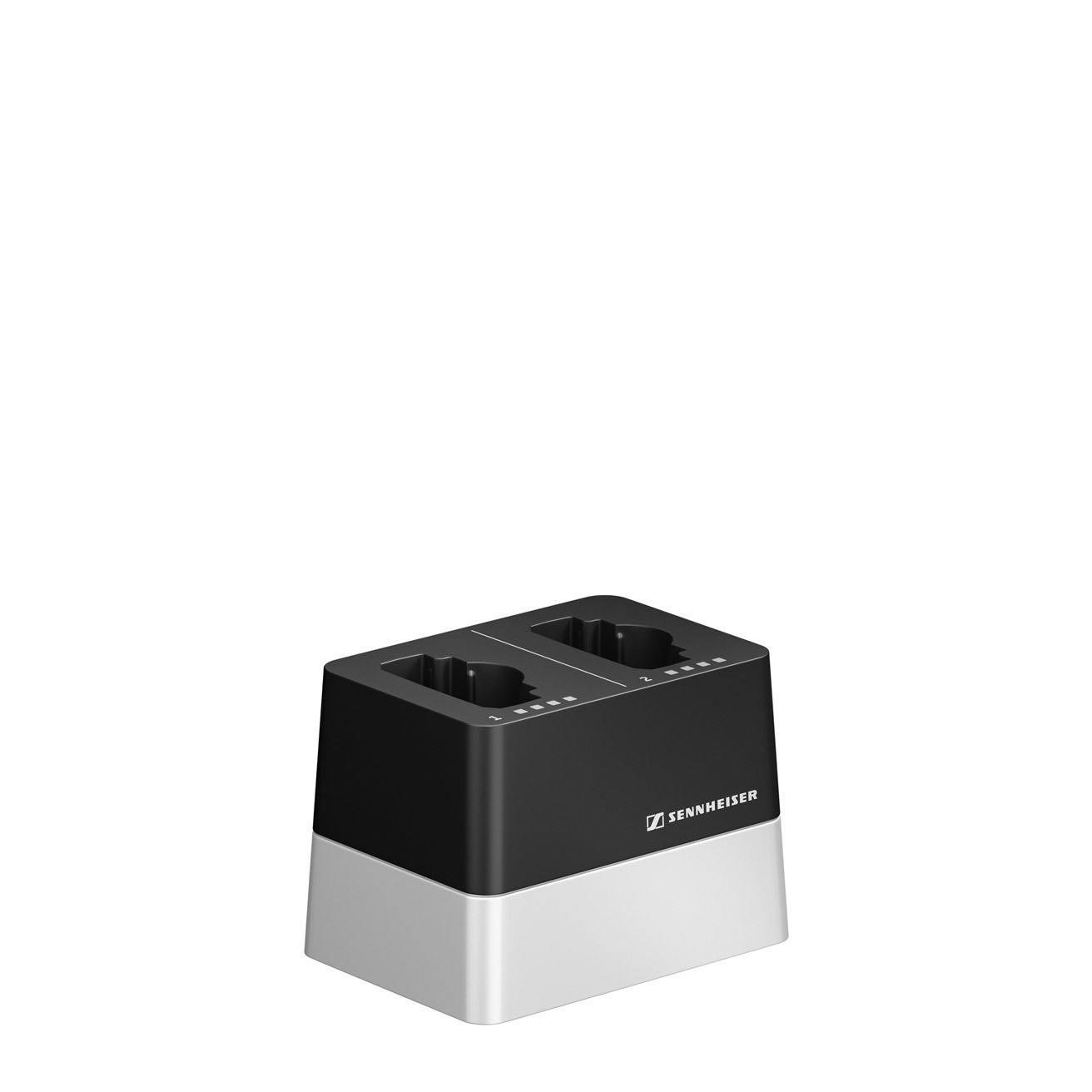 Das Sennheiser DUO-Ladegerät ermöglicht das gleichzeitige Aufladen von zwei Sendern der Serien SL DW / EW D1 und AVX.