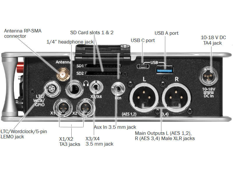 Viele Funktionen, wie das neue Design des Vorverstärkers von Sound Devices, 2 SD-Kartensteckplätze, zwei L-Mount-Akkus zum Laden sowie eine interne 256-GB-SSD wurden aus dem Scorpio von Sound Devices übernommen.