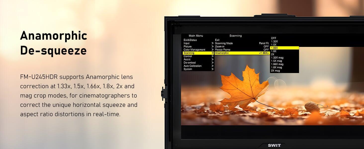 De-squeeze Ratios | 1.33x, 1.5x, 1.66x, 1.8x, 2x (MAG) |
