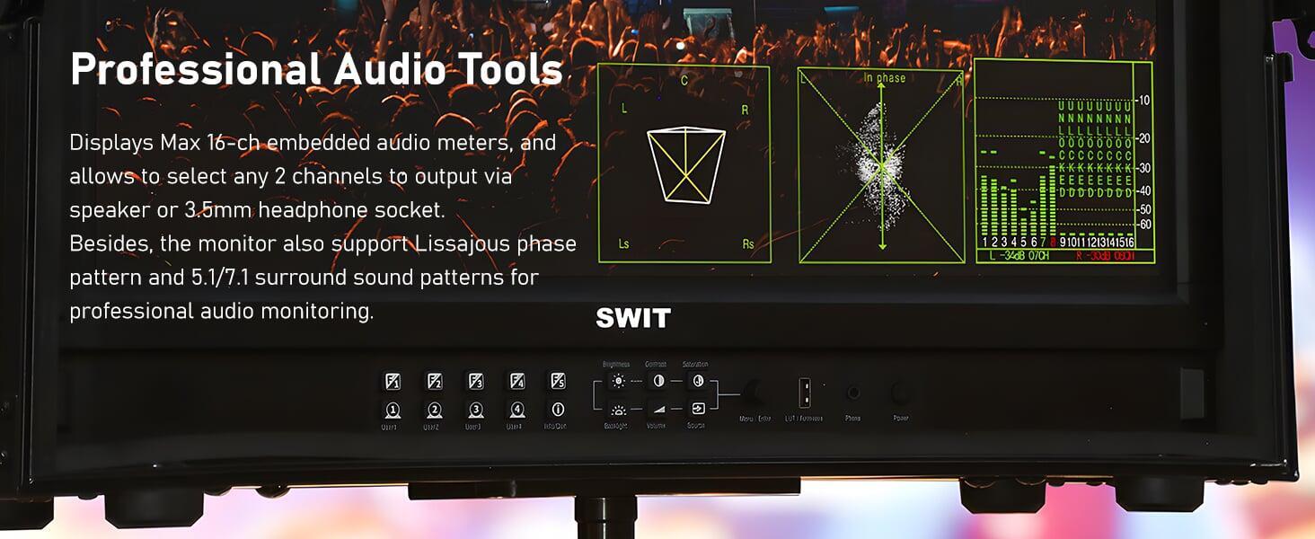 Audio Monitoring | 16-ch meter, Lissajous, 5.1/7.1 surround |