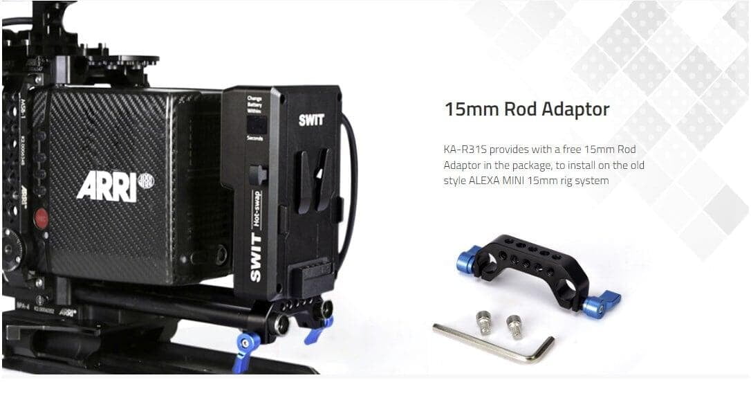 14.4V V-mount Hotswap Dedicated for ALEXA MINI/MINI LF 43Wh, 200W constant load cells inside At least 2 minutes run time Countdown seconds display D-tapx2, 2-pin LEMO, USB output 8-pin LEMO input for power station hotswap 3GSDI 1-2 distribution with SDI isolater Aluminum CNC unibody housing MINI LF system RAB-1 Clamp2 install Provide 15mm rod clamp for old MINI system Multiple circuit protections