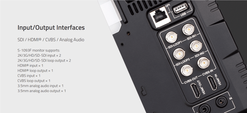 | 3.5mm ×1 | SDI, HDMI, Analog audio output |