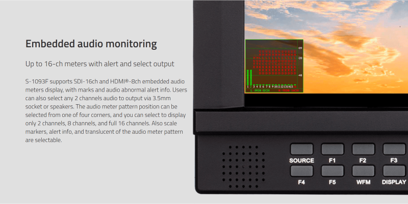 › 16-ch Embedded audio meters with alert