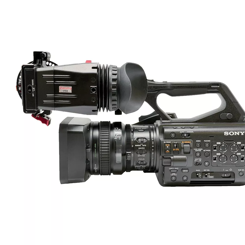 The Sony Z300 Z-Finder is Zacuto’s custom optical viewfinder for the PXW-Z300 camcorder. It mounts directly to the camera’s swivel LCD and provides 2.5x magnification with adjustable diopters for accurate focus in any lighting.